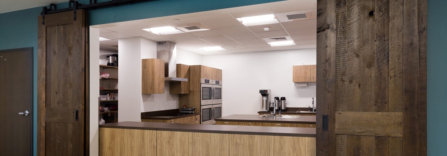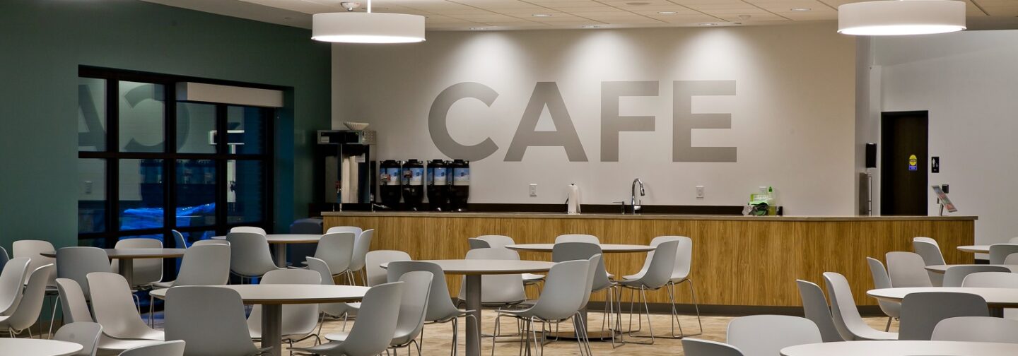 The Church’s gym/worship area includes a stage, a separate audio-visual area, and a baptistry. The welcoming front entrance provides an open space for members to congregate, the kitchen an opportunity to serve, and the cafe a way to enjoy coffee and conversation before or after services.