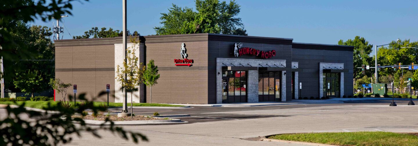 Bush Construction delivered this design-build retail project as a new single-story, wood-framed commercial building designed to complement the existing structures on the property and fit seamlessly within the surrounding area. The development serves as an additional Hungry Hobo location and includes a tenant-ready shell space planned for future leasing.