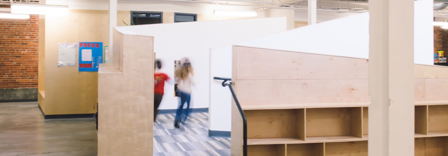 Our design and construction teams followed the development process, creating an exceptional design in this 1940’s warehouse building, on a short timeline. This once nearly abandoned and boarded up building, now features large naturally lit classrooms, a central atrium space, gymnasium and pending LEED certification.