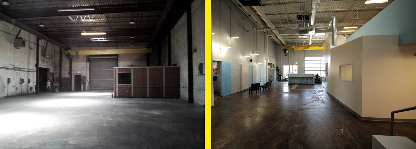 In addition to creating and building a unique design for the workspace, we worked with the client to develop the property, guiding them through a develop-to-suit process that included acquisition, financing, and incentives.