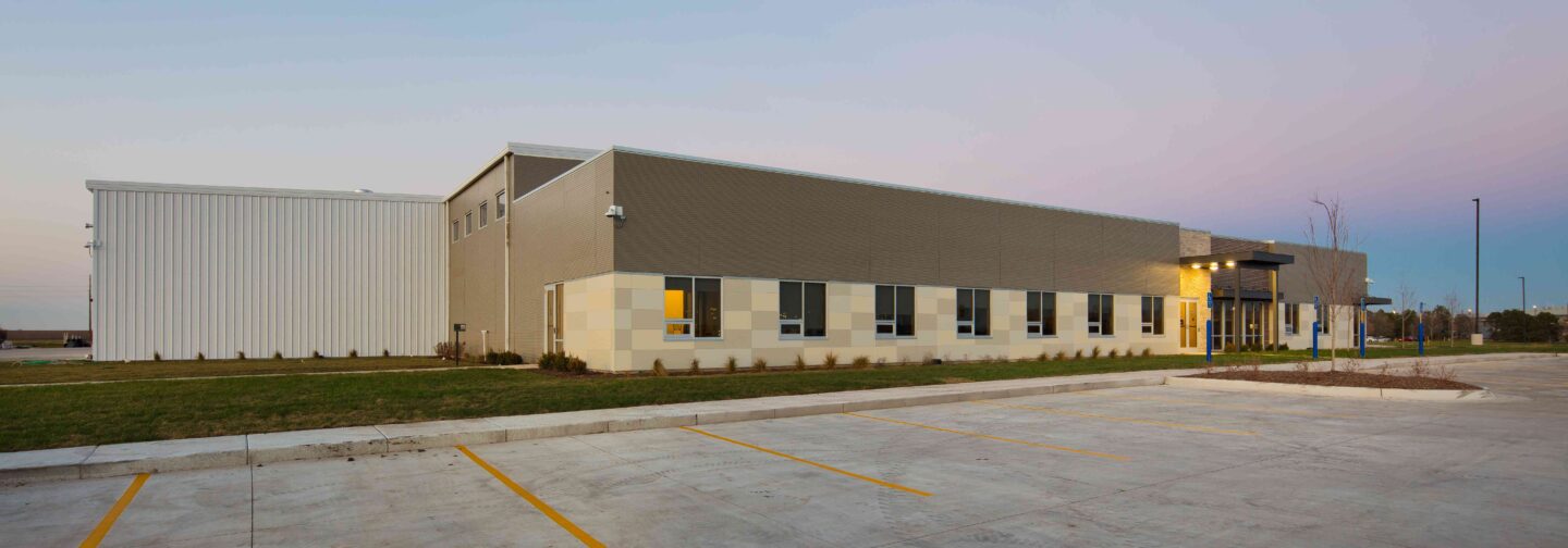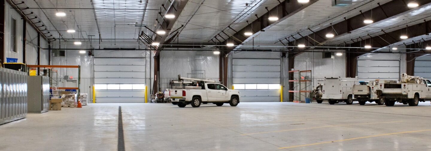 Nestled on 30 acres, this newly constructed operations facility features designated spaces for both office and warehouse material handling. Management, administrative staff, and service staff can now work together under one roof in multi-functional spaces. The modern facility also includes a multi-use training room, expanded parking, and a convenient wash bay within the truck bay area. The design has been carefully thought out by our design experts, with the intent of advancing current operations and supporting future growth on this property.